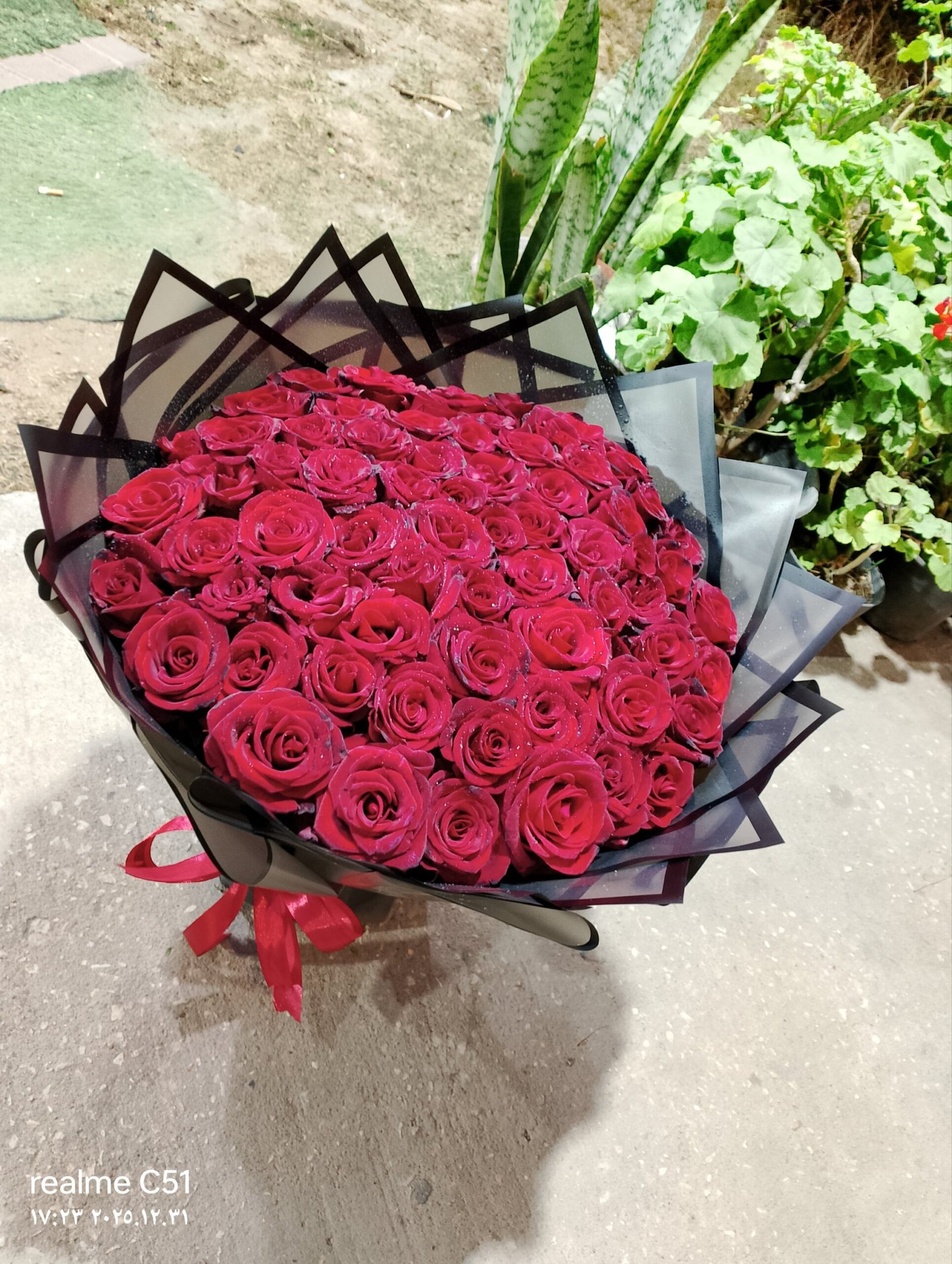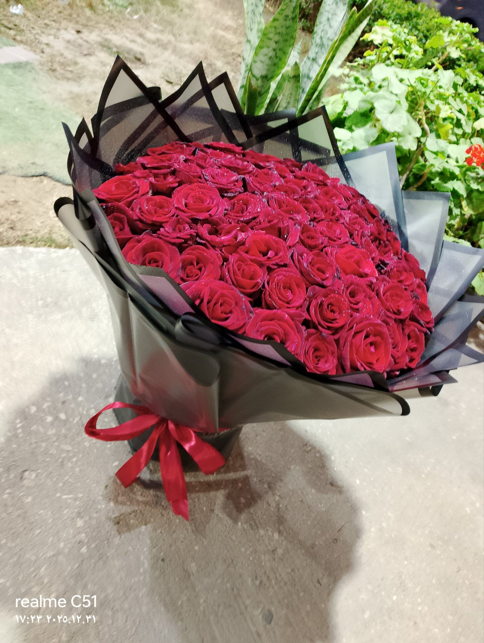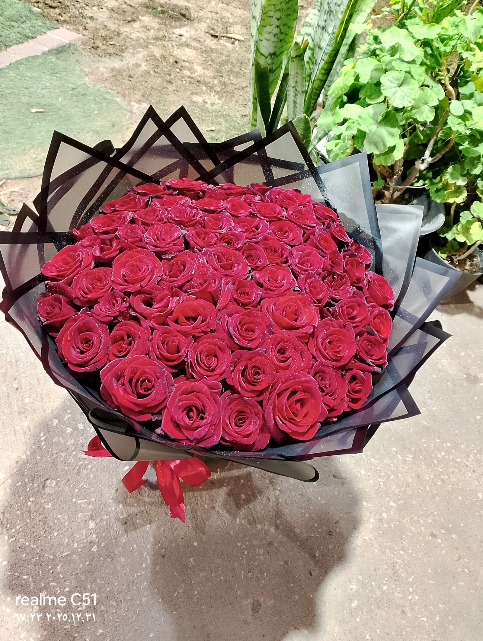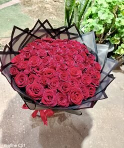 100 red roses in imported black packaging