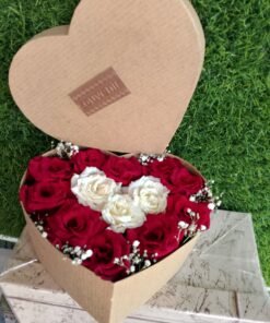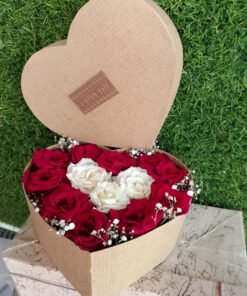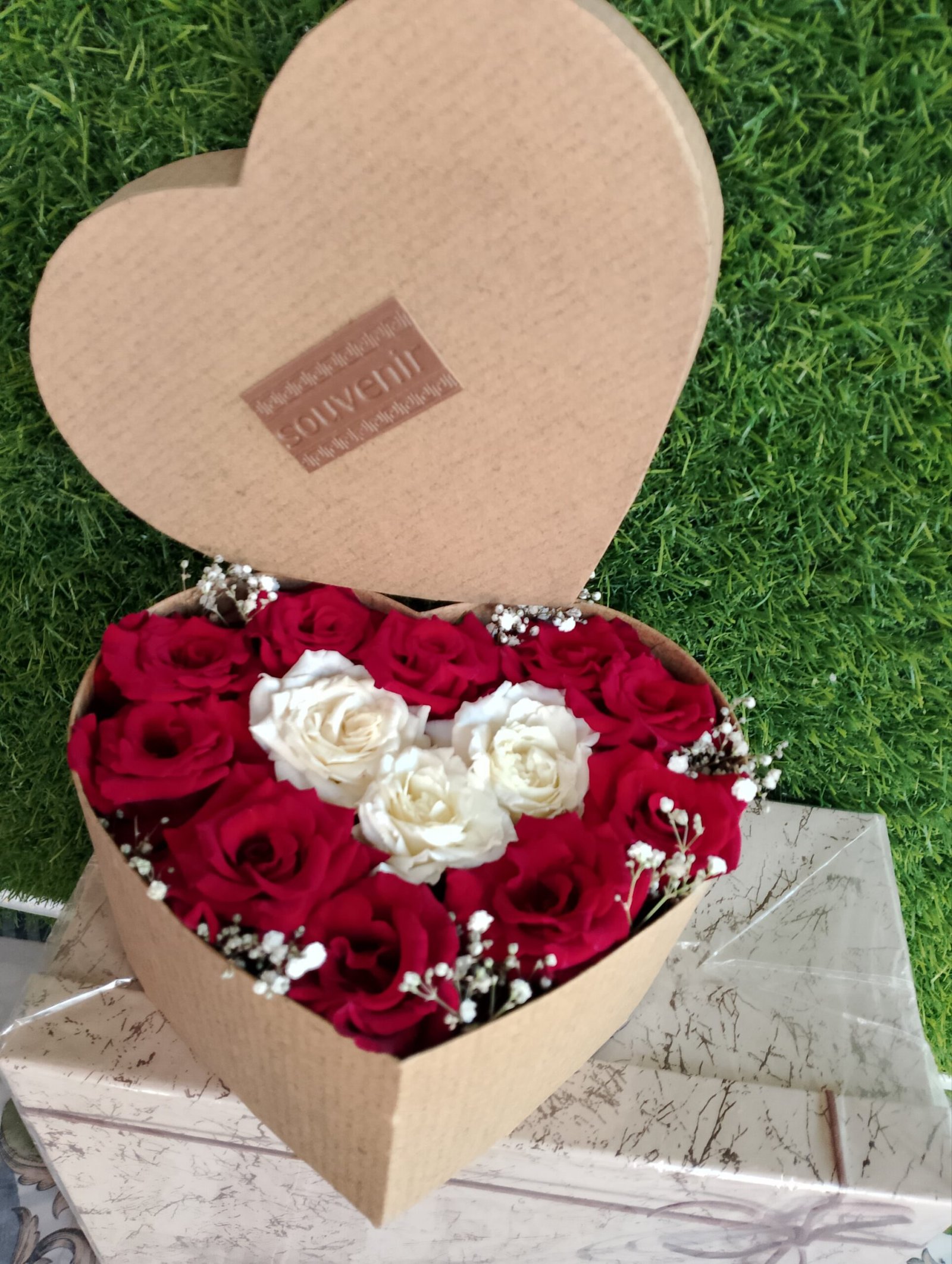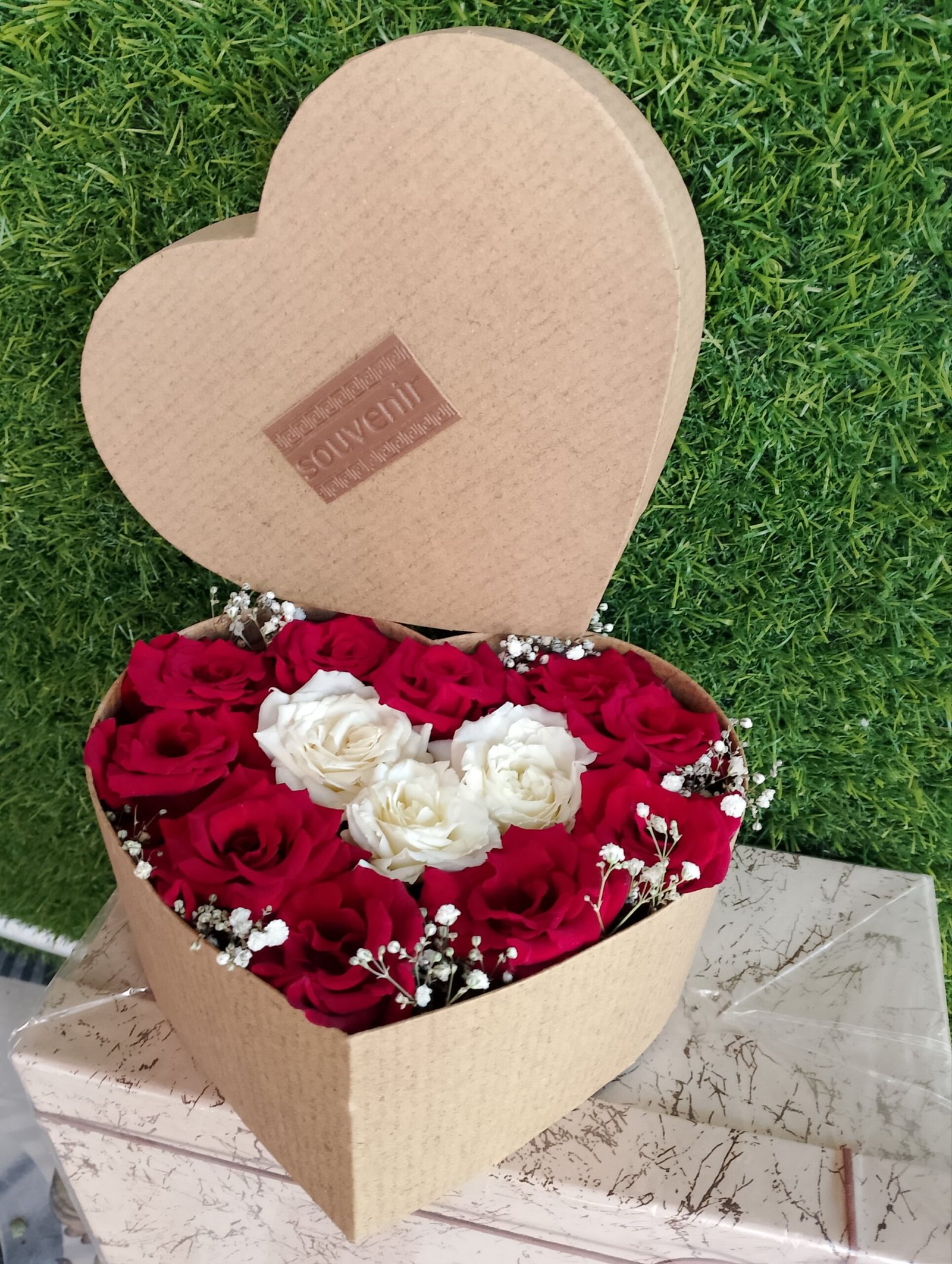 13 red and white baby flower roses Heart-shaped box, medium craft